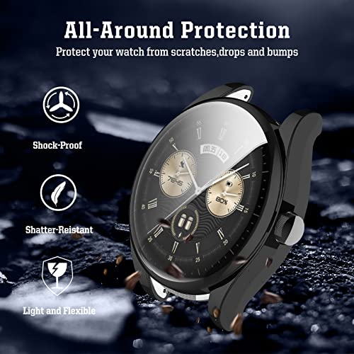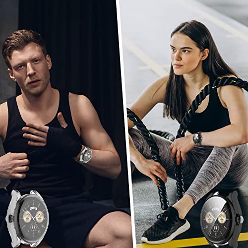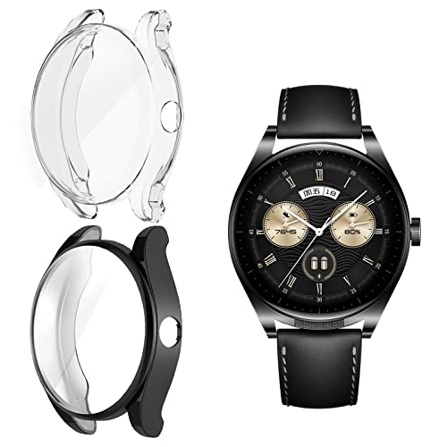Rosok - حافظة حماية كاملة مضادة للبقع والخدوش من البولي يوريثين المقاوم للحرارة والمرن لهيكل ساعة هواوي ووتش بادز روسوك لون اسود وشفاف قطعتين