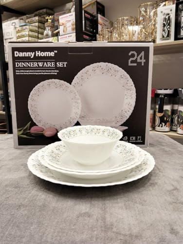 Generic - أدوات مائدة دائرية، 24 قطعة، نمط مزخرف، لون أبيض