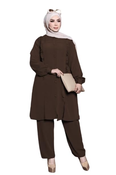 GAMAL SONS FOR ABAYA - طقم تونيك وبنطلون للنساء من رويال كريب، لون بني، GS-7090، مقاس XL