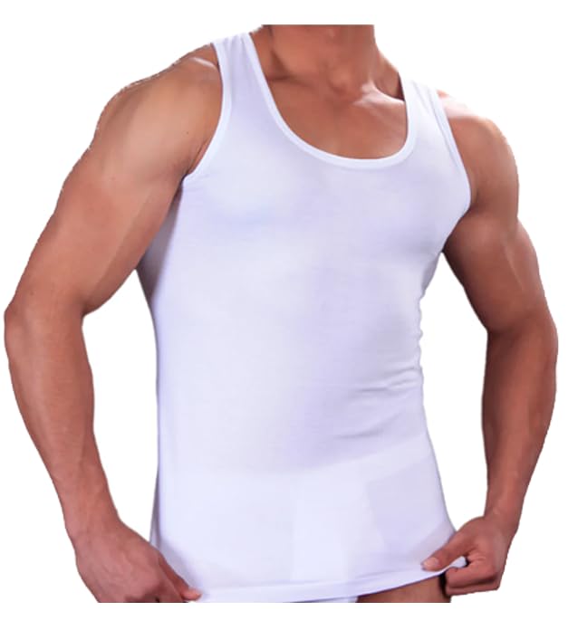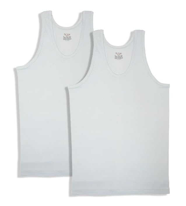 Royal Tex - طقم فانلة قطن بدون اكمام برقبة دائرية للرجال من رويال تيكس، لون ابيض، مقاس XL، كود 3، قطعتين