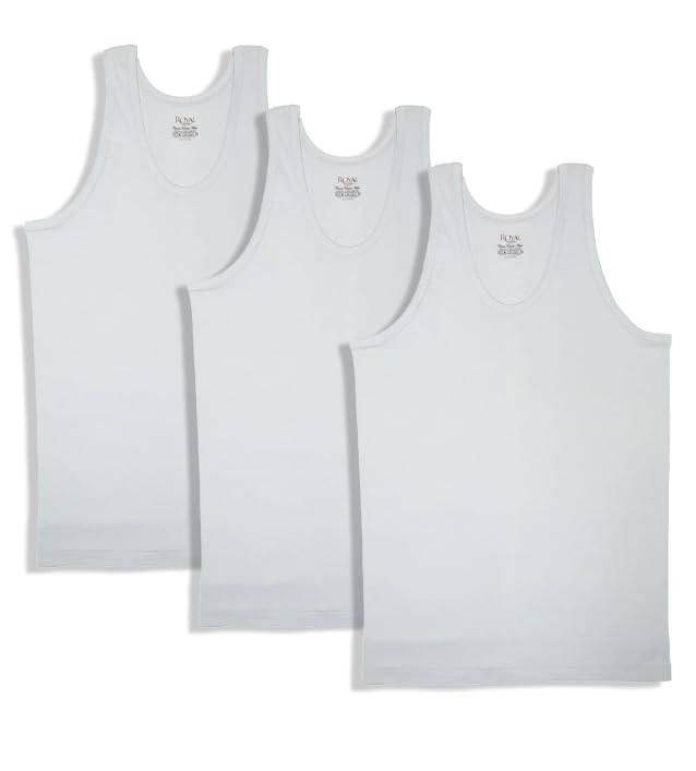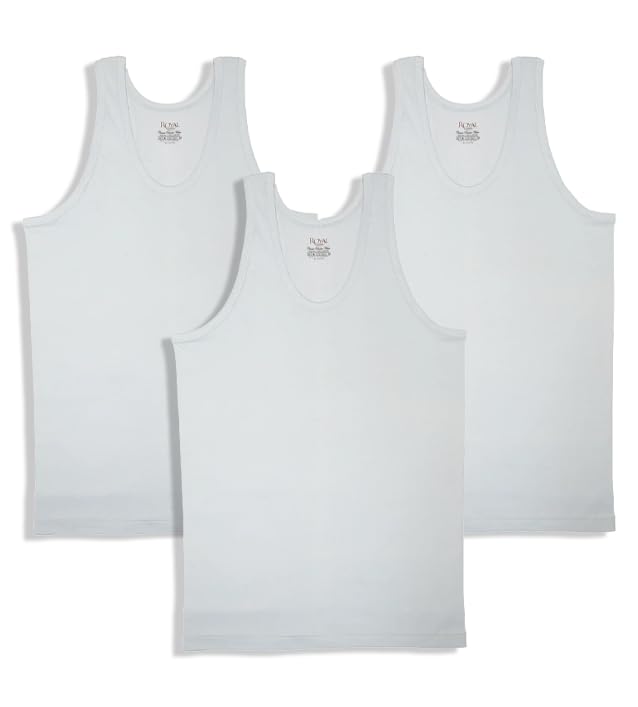 Royal Tex - طقم فانلة قطن بدون اكمام برقبة دائرية للرجال من رويال تيكس، مجموعة من 3 قطع، لون ابيض، مقاس L - كود 1