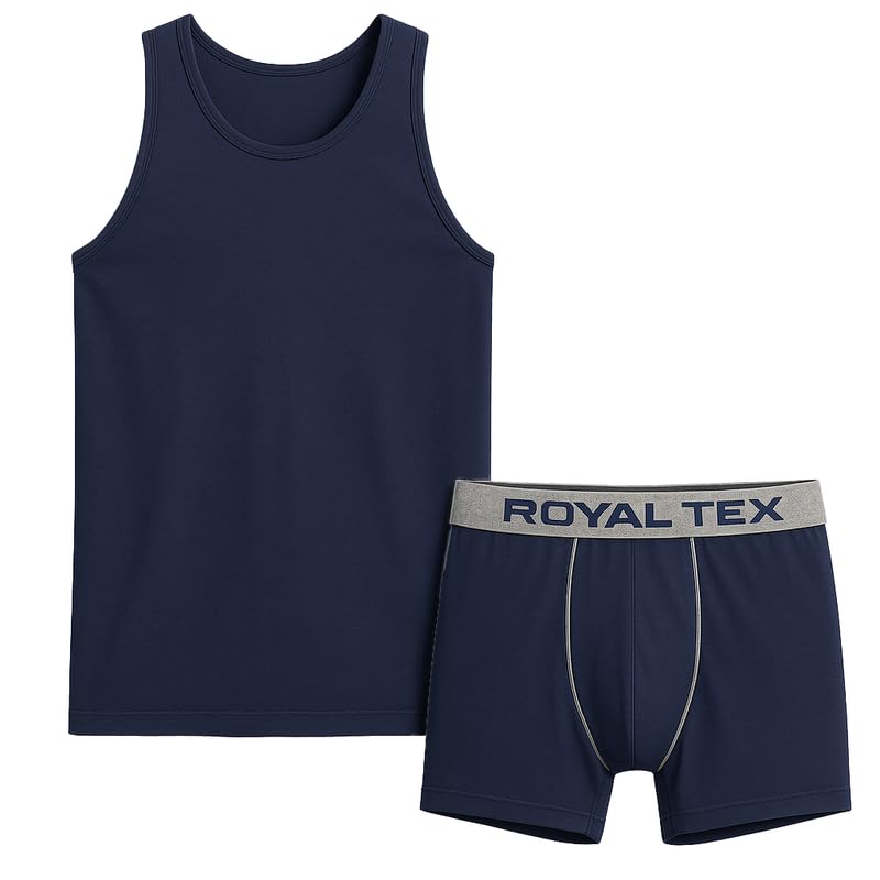 Royal Tex - طقم فانلة وبوكسر من رويال تكس للرجال، مصنوع من القطن والليكرا، بتصميم أساسي
