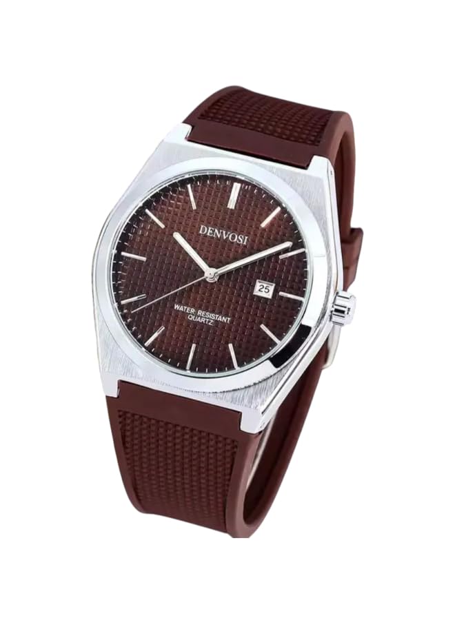 Generic - ساعة يد جلد رابر بشكل دائري للرجال بقفل محكم الغلق