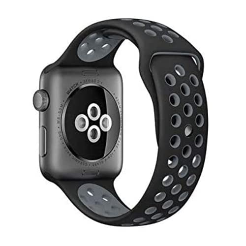 Generic - سوار مطاطي لساعات ابل اي ووتش مقاس 42 ملم سيليكون باصدار رياضي بثقوب من نايكي أسود للبالغين الجنسين