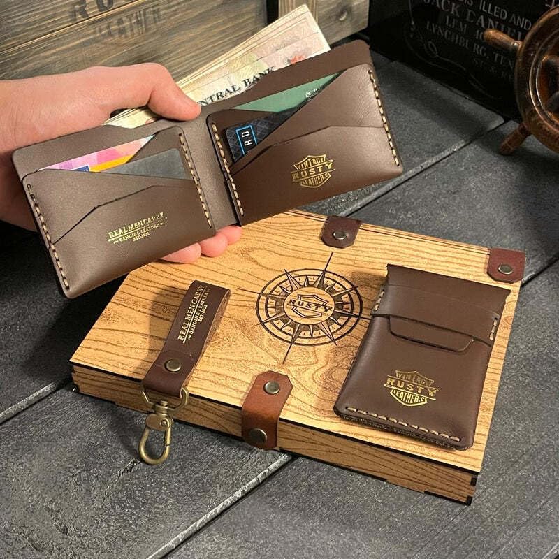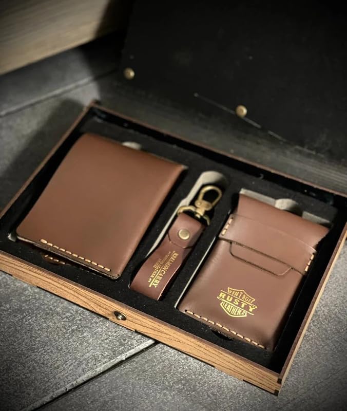 - ارتقِ بضرورياتك اليومية مع مجموعة إكسسوارات راستي نوباك الأنيقة للرجال. تتضمن المجموعة محفظة مصنوعة يدويًا من الجلد الطبيعي مع 12 فتحة للكروت وجيب للنقود، وحامل كروت من الجلد أنيق يتسع لما يصل إلى 10 بطاقات مع مساحة تخزين إضافية، وسلسلة مفاتيح جلدية عصرية. يتم تقديمها في صندوق تخزين خشبي مصقول يضيف وظائف طويلة الأمد. مثالية لأولئك الذين يبحثون عن أسلوب لا يتأثر بمرور الزمن وحرفية فائقة في إكسسواراتهم الشخصية.