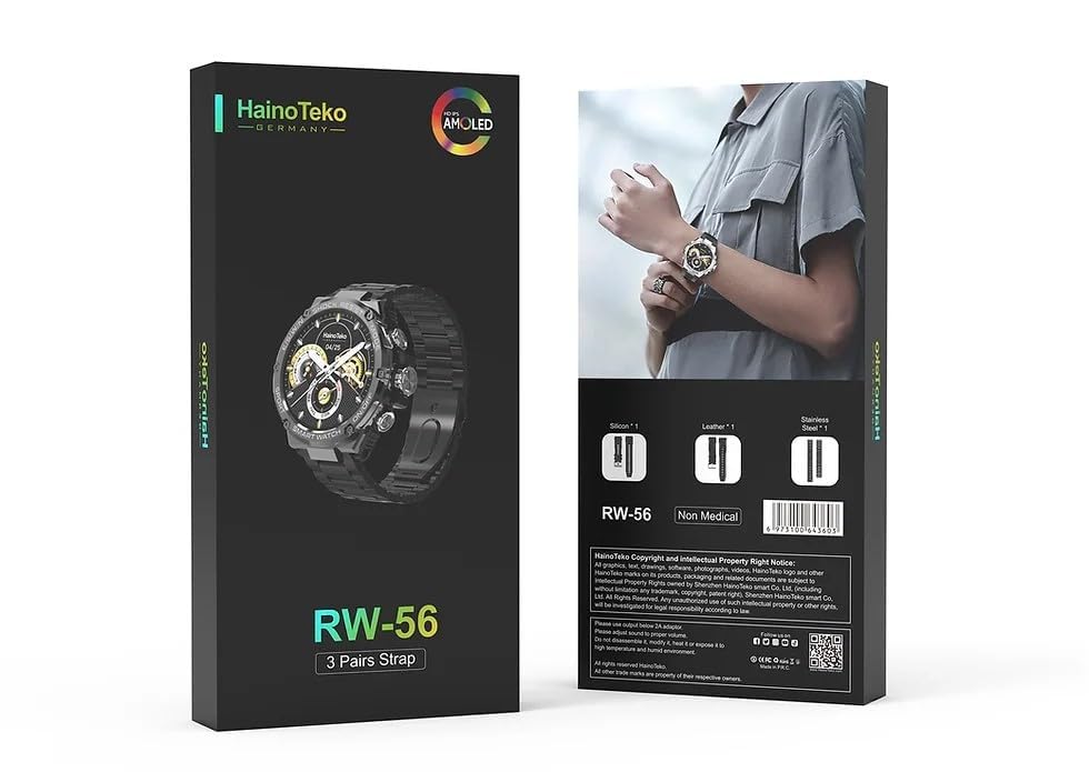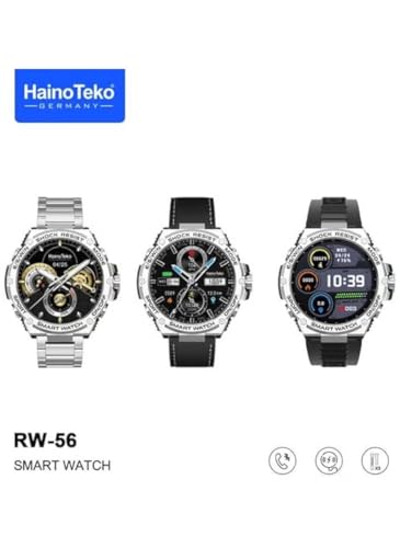 Generic - ساعة ذكية RW-56 هاينو تيكو- بشاشة دائرية AMOLED عالية الدقة - شحن لاسلكي - تدعم مكالمات البلوتوث -3 أشرطة قابلة للتغيير