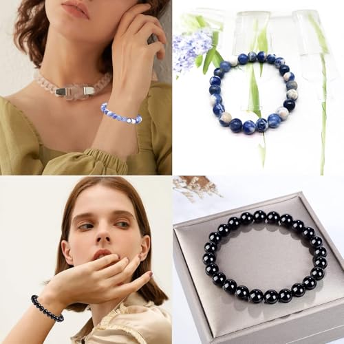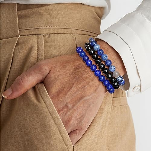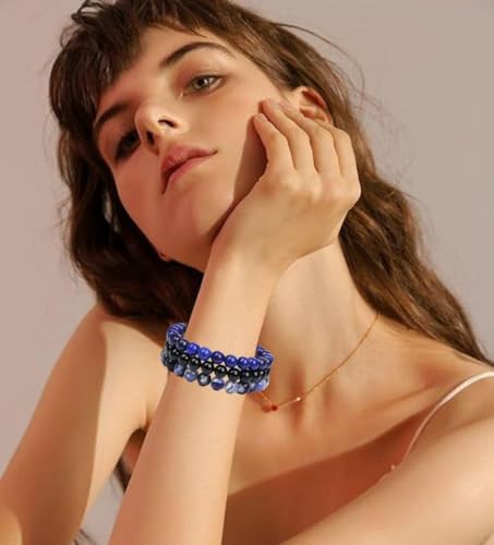 SAIBANGZI - اساور كريستال علاجية للنساء من سايبانغزي، 3 قطع، 8 ملم، سوار خرز من الاحجار الطبيعية، سوار قابل للتمدد، مجوهرات جمشت، هدايا مجوهرات