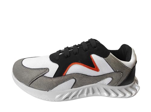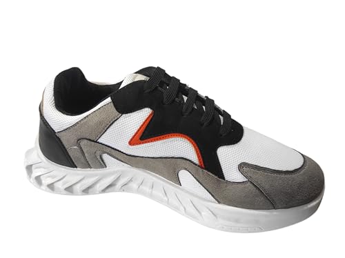 salerno - حذاء منسوج من الجلد الصناعي من الشمواه من ساليرنو، 101/36-لون أبيض/أسود/رمادي- مقاس 42 EU
