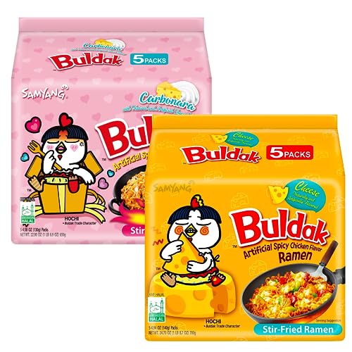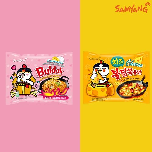 Vmart - رامن بولداك ساميانج بالنكهات الحارة الكورية (كاربونارا 130 جرام وجبنة 140 جرام، عبوة من 10 قطع)