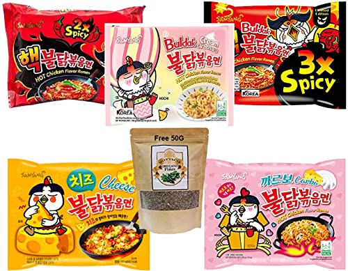 SAMYANG - نودلز متعددة العبوات (5 عبوات من النودلز) و50 جرام اوريجانو، نباتية، من ساميانغ