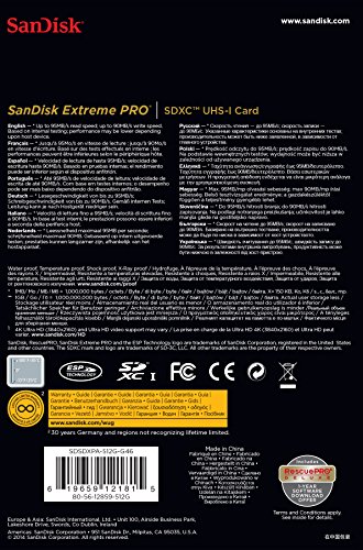 SanDisk - بطاقة ذاكرة سانديسك SDISK اكستريم برو SDXC 512 جيجابايت 95 ميجابايت/ثانية