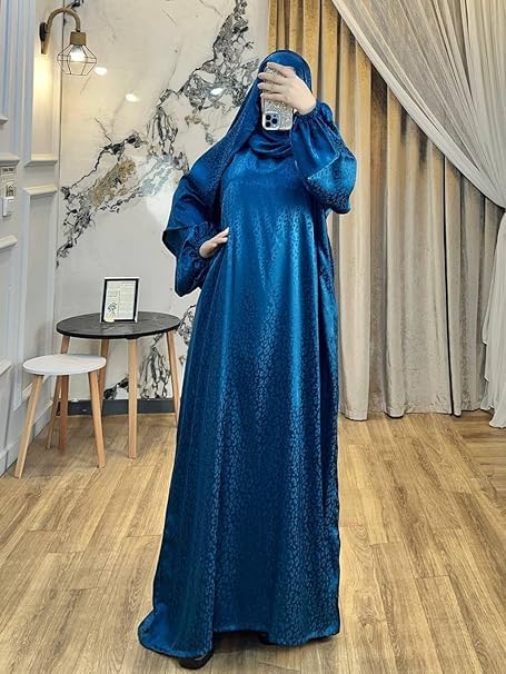 Generic - إسدال صلاة للنساء من الساتان الحريري، متعدد الألوان، مقاس حر، بتصميم عصري إسلامي، مع حجاب متصل بسوستة سحرية