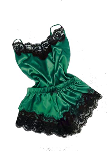 Generic - لانجيري ساتان مكون من توب وشورت، اخضر