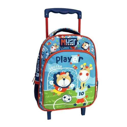 MUST - شنطة ظهر بعجلات للمدرسة لرياض الاطفال من لاعبة كرة القدم بتصميم حيوانات مكونة من 2 حافظة