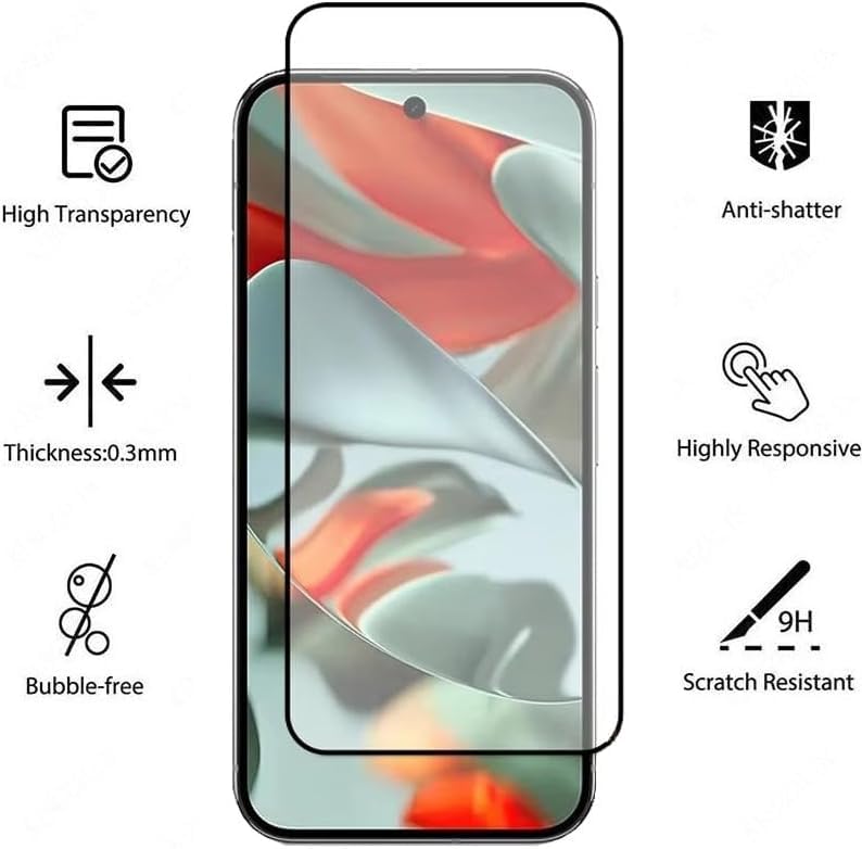 Generic - واقي شاشة متوافق مع واقي شاشة Google Pixel 9 Pro من الزجاج المقوى [مضاد للتوهج] [تغطية كاملة عالية الدقة] [سهل التركيب] [حساس للمس]
