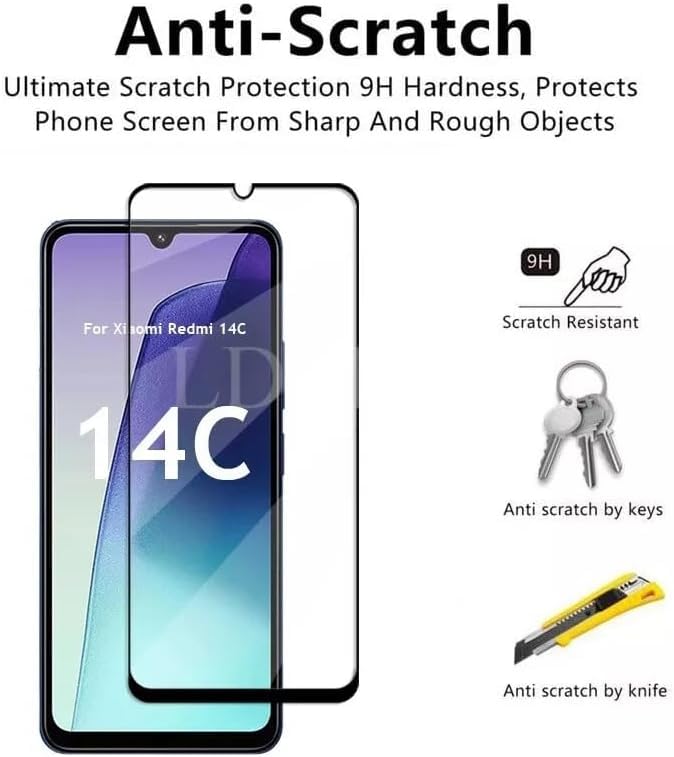 Generic - اسكرينة متوافق مع هاتف شاومي ريدمي 14 سي - ريدمي A4 - بوكو سي 75 باطار اسود تحافظ علي شاشة الهاتف