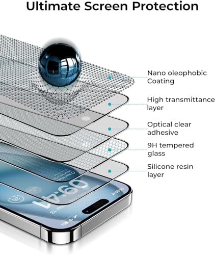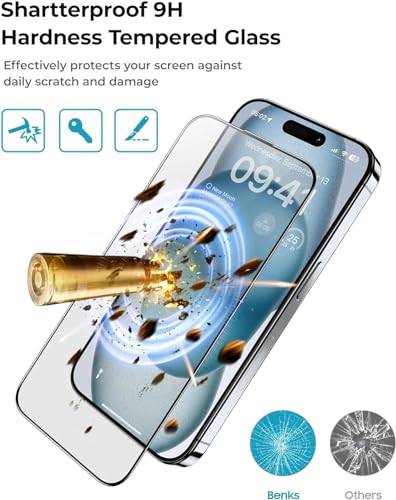 - [حماية بدرجة صلابة 9] يوفر الهيكل المصنوع من الزجاج المقوى الممتاز أقصى مقاومة للخدش وحماية من الكسر. يحمي شاشة ايفون 15 برو من التآكل اليومي والسقوط والتأثيرات مع الحفاظ على حساسية اللمس الأصلية.