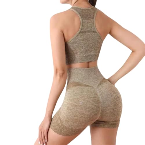 Generic - طقم حمالة صدر رياضية بدون سلك وشورت من قماش مضلع بدون خياطة من النايلون، دعم متوسط ورقبة على شكل حرف V لليوجا والتمارين الرياضية لجميع المواسم، المقاس: مقاس واحد 40 - 75 كجم