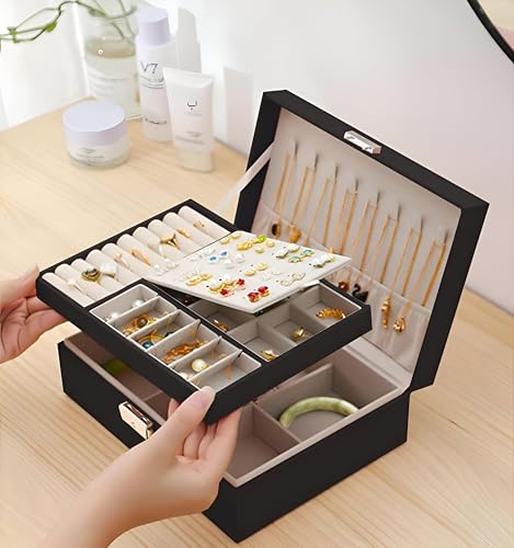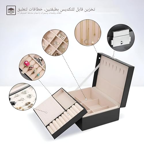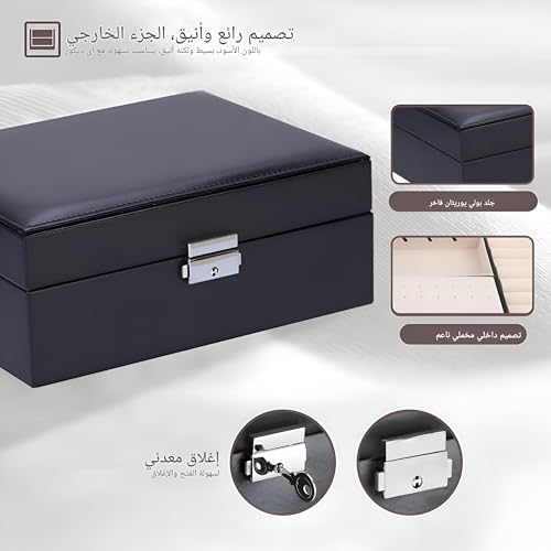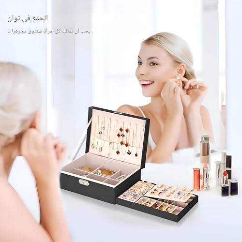 Generic - علبة مجوهرات آمنة للتخزين، حافظة جلد محمولة بغطاء وأجزاء متعددة وقفل موثوق لحفظ الخواتم والحلقان والساعات والمزيد