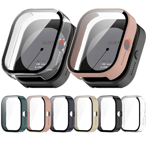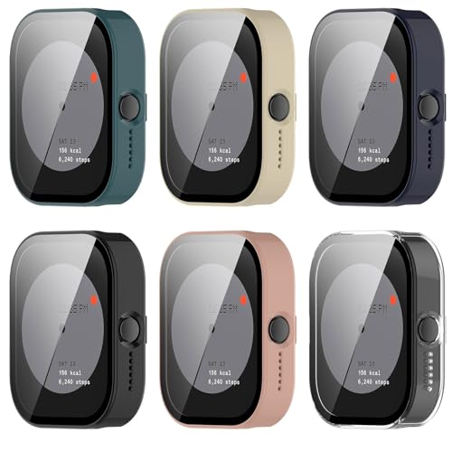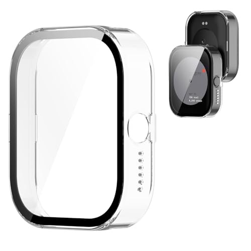 - 2 - 1 المادة: مصنوع من واقي شاشة من الزجاج المقوى وممتص للصدمات من البولي كربونات، يحمي ساعتك الذكية من الخدوش والصدمات والسقوط العرضي.