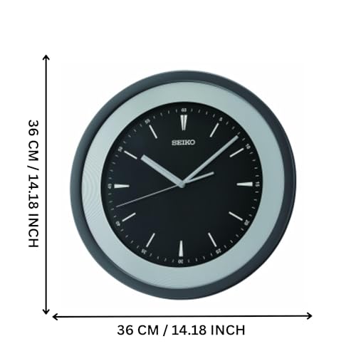 Seiko - ساعة حائط أنالوج QXA812S من سيكو، قطر 36.1 سم، أسود/فضي، تناظري