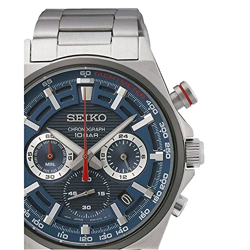 Seiko - ساعة كرونوغراف بمينا أزرق وسوار بلون فضي للرجال من سيكو SSB407P1