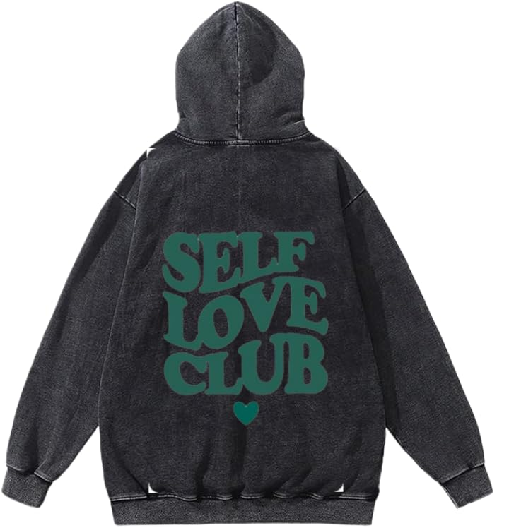 Generic - سويت شيرت بغطاء للرأس مطبوع عليه Self Love Club من الخلف