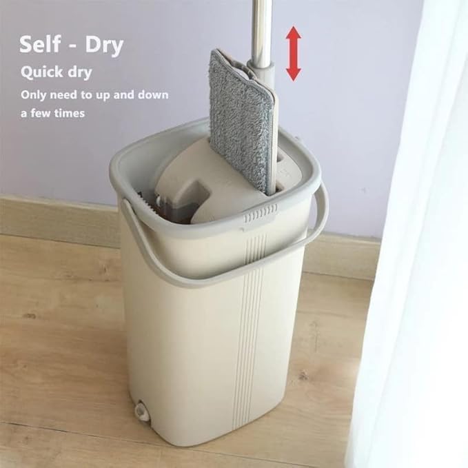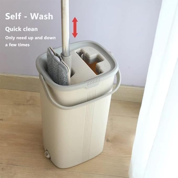 Generic - ممسحة مسطحة ذاتية العصر مع مجموعة دلو، نظام تنظيف الارضيات بدون استخدام اليدين