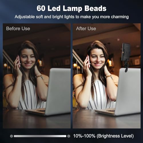 - 【10 مستويات سطوع】مصباح الكاميرا المدمج في 120 خرزة إضاءة LED عالية السطوع، يحل مشكلة الضوء ويحسن جودة التصوير الليلي. يحتوي مصباح الموبايل للصور على 10 مستويات من السطوع قابلة للتعديل، بغض النظر عما إذا كان داخليًا أو خارجيًا أو نهارًا أو ليلاً، يمكنك الحصول على السطوع الذي تريده والاستمتاع بمتعة التقاط صور السيلفي. مؤشر تجسيد اللون لضوء المكياج يصل إلى 95+، مما يمنحك بشرة طبيعية وناعمة ومشرقة.