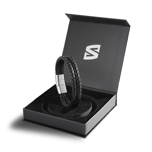 SERASAR - سيراسار سوار جلد للرجال بمشبك مغناطيسي من الستانلس ستيل | البقر الطبيعي اللامع | اساور بنمط مضفر | صندوق هدايا مجوهرات متضمن | اكسسوارات عصرية