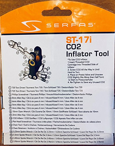 Serfas - أداة متعددة الوظائف تحتوي على 17 وظيفة مع منفاخ ثاني أكسيد الكربون مدمجة، من سيرفاس منفاخ.