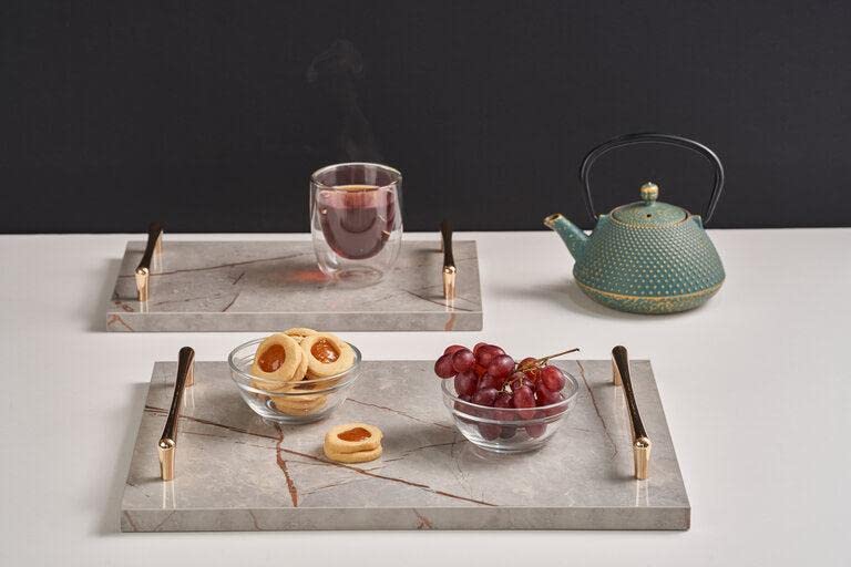 - قم بتزيين وتنظيم منزلك: صينية لامعة عصرية لافتة للنظر مع مقابض، الإضافة المثالية لمنزلك أو مكتبك.