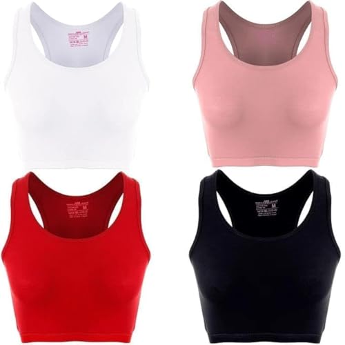 Mesery - مجموعة من 4 حمالات صدر رياضية بدون اسلاك متقاطعة بتغطية كاملة الخلف, متعدد الألوان, L، قطن، سلكي، مسيري، للنساء