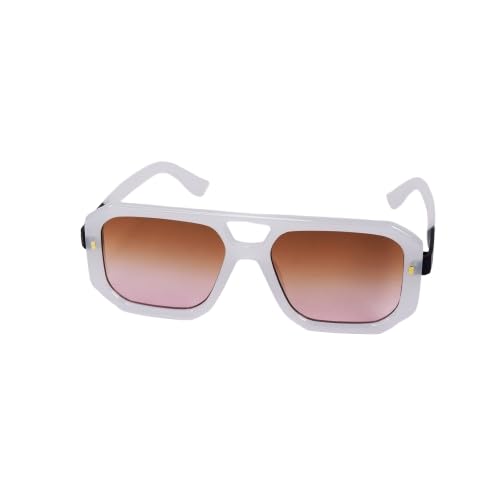 Generic - نظارة شمسية كبيرة الحجم SG466، اطار مستطيل، عدسات بلون بني متدرج، ابيض