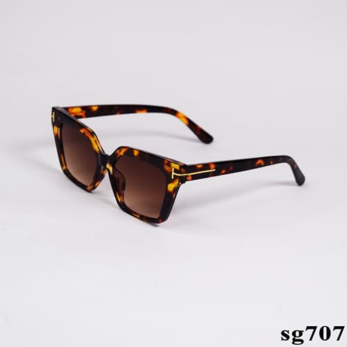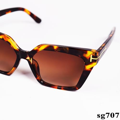 Generic - نظارة شمسية مربعة كبيرة الحجم بتصميم صدفة السلحفاة SG707، عدسات بنية متدرجة