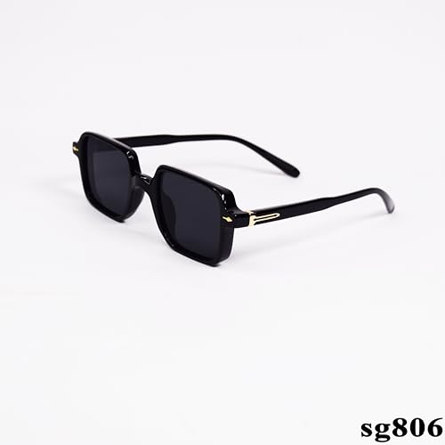 Generic - نظارة شمسية ريترو مربعة الشكل باطار اسود وعدسات مستقطبة sg806