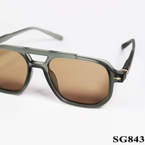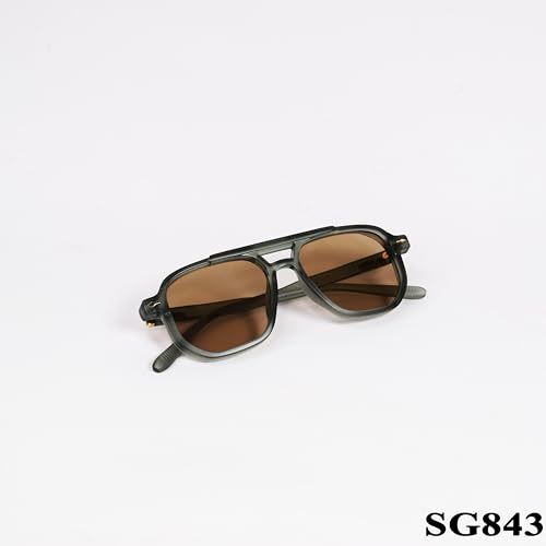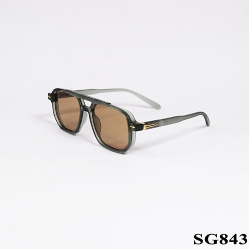 Generic - نظارة شمسية بعدسات مستطيلة مستقطبة باطار اسود وعدسات بنية sg843