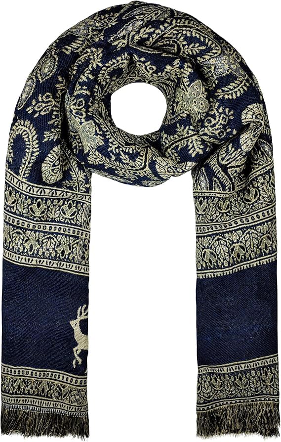 Generic - شال وشاح سكارف رجالي صوف ، كبير ، كحلي ، نقش الغزالة الصغيرة