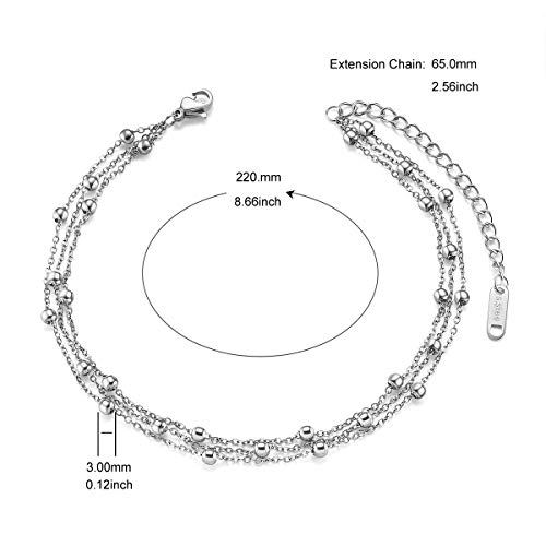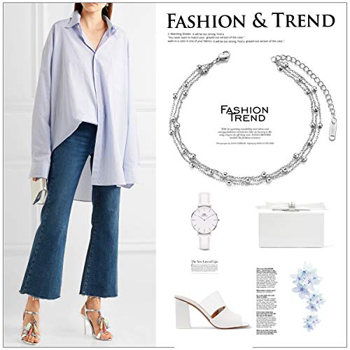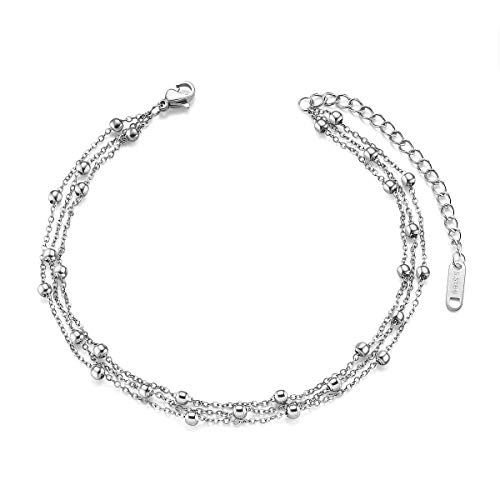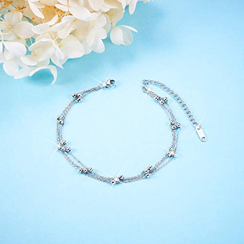 SHEGRACE - خلخال من ستيل التيتانيوم مع سلسلة متعددة الطبقات خرز صندل للشاطئ لشعور بالخفة الفائقة قابل للتعديل شي جرايس روز جولد/ بلاتين للنساء والفتيات مجوهرات لعيد الام ستانلس