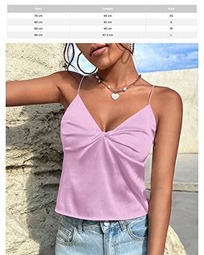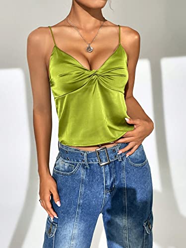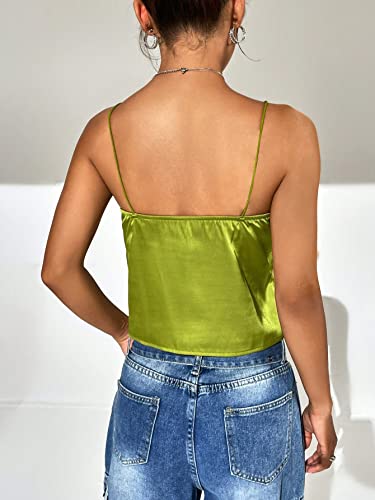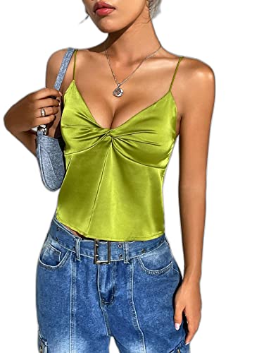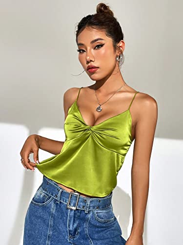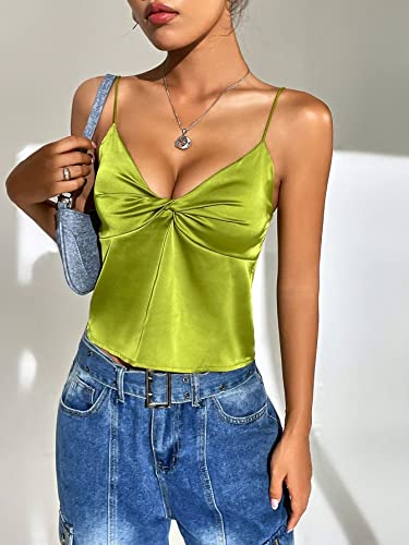 SHEIN - شي ان توب كامي ساتان تويست امامي من ايزي وير، M1693331، لون اخضر ليموني، مقاس XS