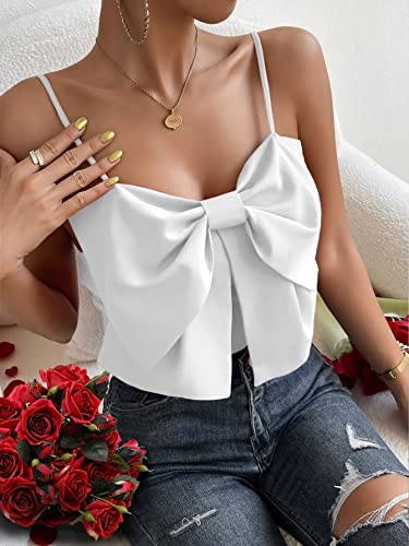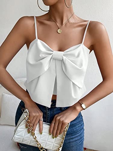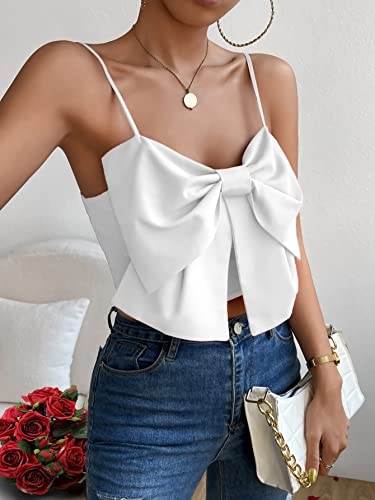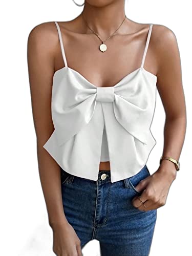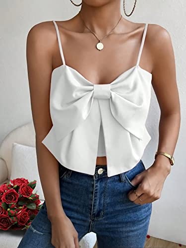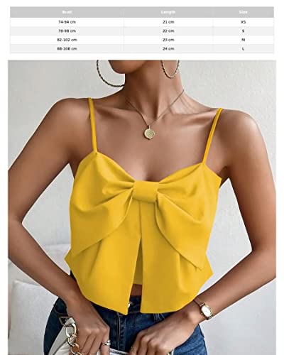 SHEIN - بلوزة قصيرة بحمالات رفيعة مزينة بفيونكة من الأمام وظهر مزموم مجموعة اس اكس واي شي ان