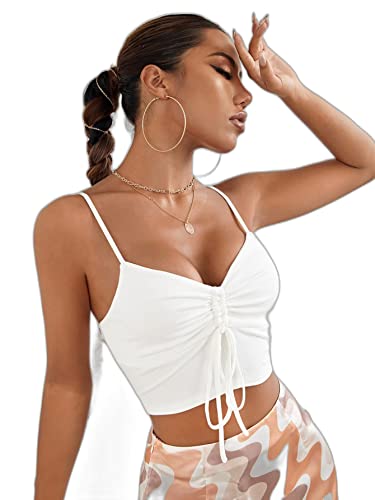 SHEIN - شي ان توب قصير بحمالات رفيعة مكشكشة برباط من يونيتي