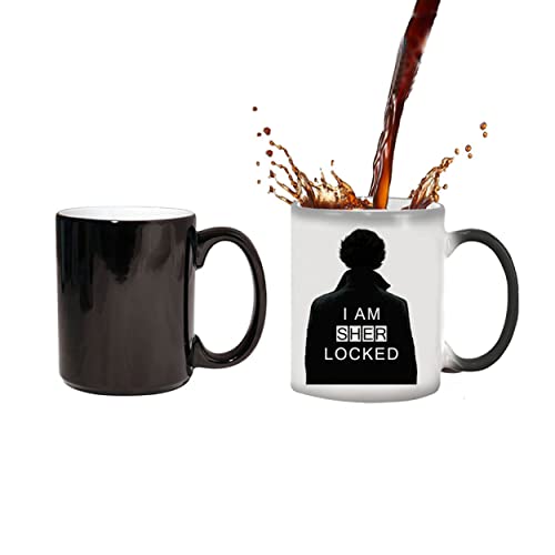 مج قهوة سحري من شير لوك، لون أسود-pr994، بورسلين، أبيض