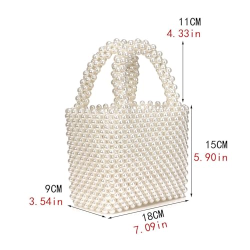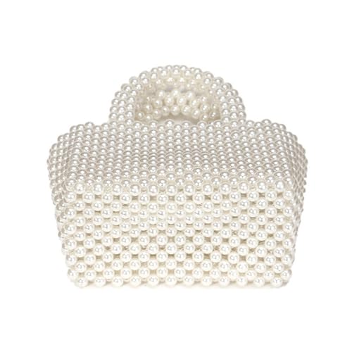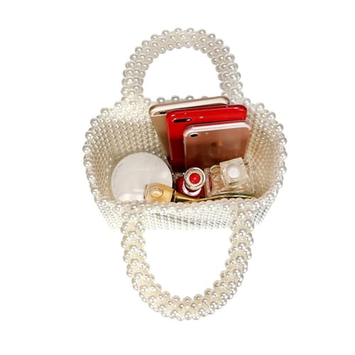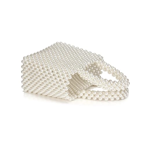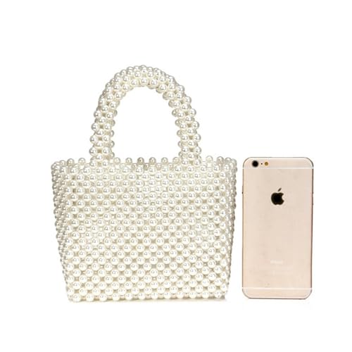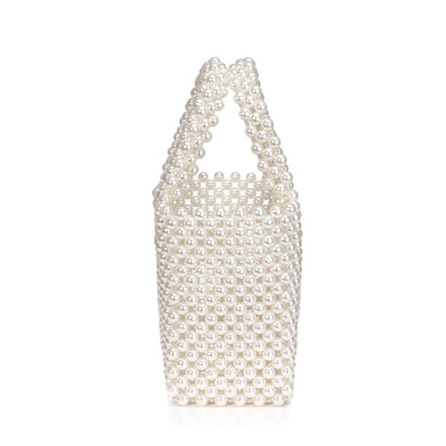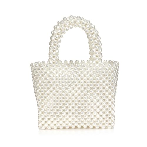 SHESRA - شنطة يد بسلسلة من اللؤلؤ الصناعي الفاخر من شيسرا، شنطة يد صغيرة مصنوعة يدويا لحفلات الزفاف وحفلات الزفاف والسفر والحفلات الراقصة 38، ابيض