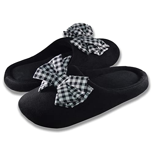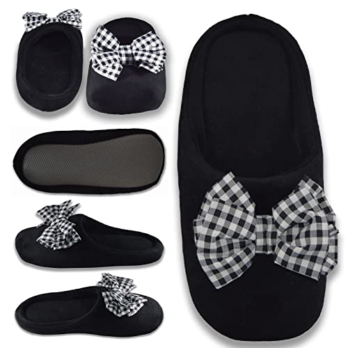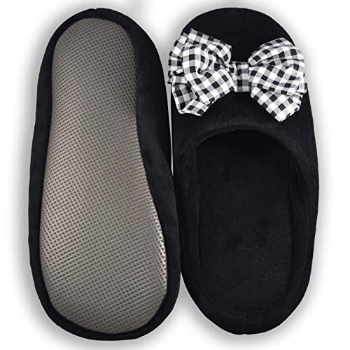 Shib Square - شبشب بفيونكة بنقشة مربعات بالأسود والأبيض للنساء من شيب سكوير
