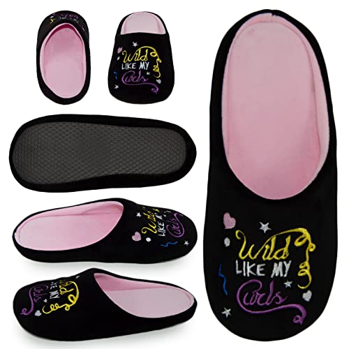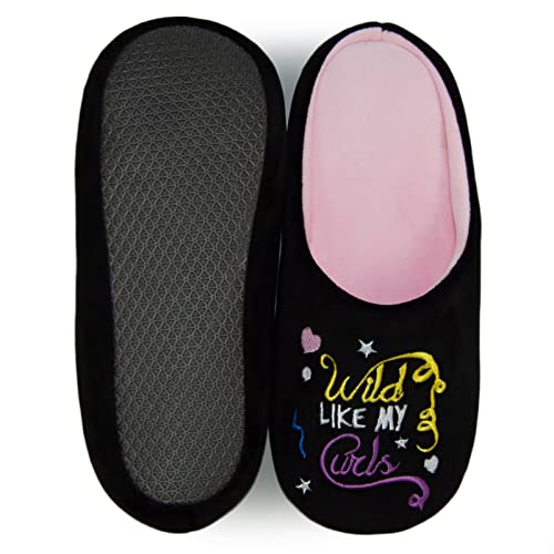 Shib Square - شبشب منزلي مطرز بعبارة Wild With Curls من شيب سكوير