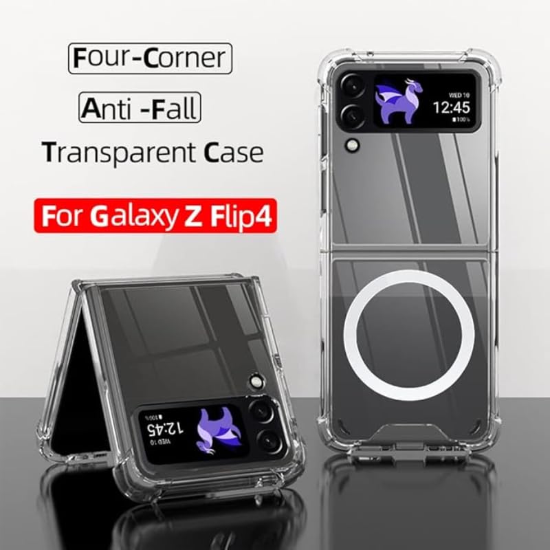 Generic - جراب حماية مغناطيسي مضاد للصدمات بتصميم خفيف الوزن ومرن ومضاد للبصمات ومقاوم للانزلاق لموبايل سامسونج جالاكسي Z فليب 4، لون شفاف