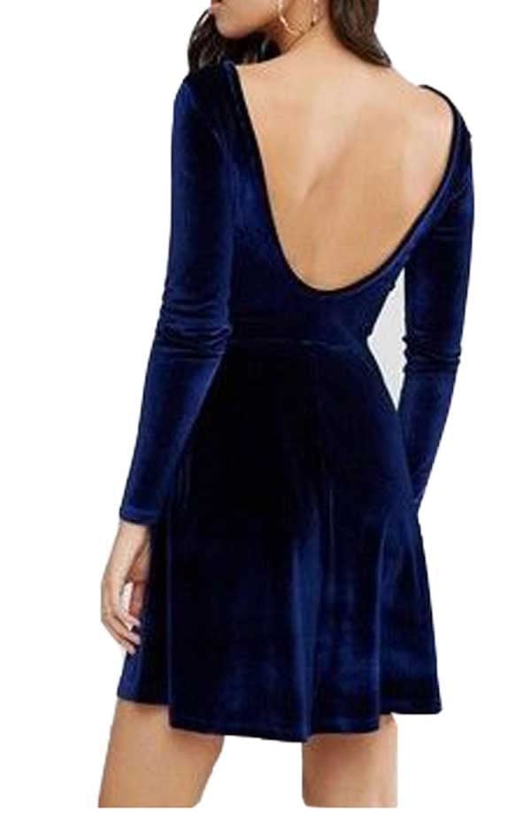 Generic - فستان قطيفة قصير، لون كحلي