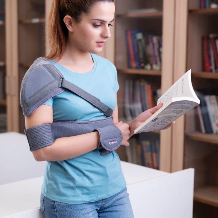 - يُستخدم جهاز منع حركة الكتف لتوفير التثبيت في حالة خلع الكتف وإعادة التأهيل بعد العملية الجراحية للكتف. فهو يقلل من حركة الذراع عن طريق وضع الذراع بالقرب من الجسم.