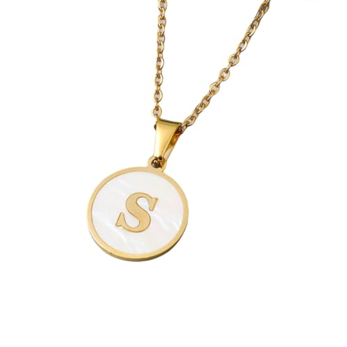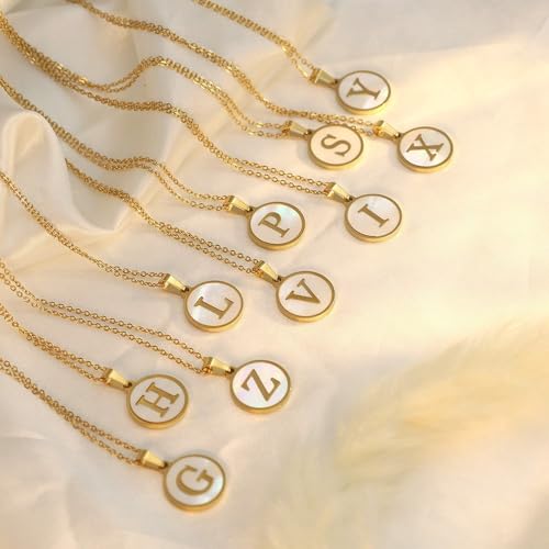 SHOWDAY - عقد بقلادة من الستانلس ستيل مطلي بالذهب للنساء، عقد بدلاية على شكل حرف أبجدي ذهبي مع صدف، قلادة أنيقة بدلاية الاسم الأول A-Z من شو داي